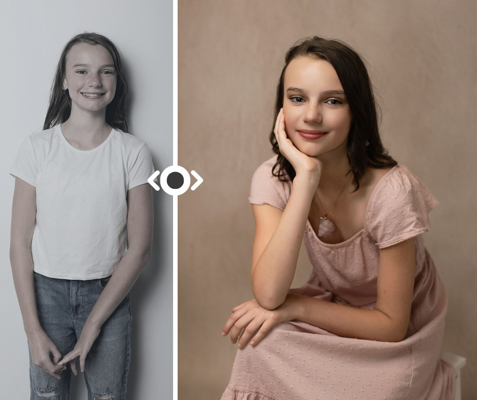 It's a fun experience! Beyond the photos, a portrait session is an adventure-- trying poses & outfits while listening to their favorite music in a supportive & lighthearted environment.